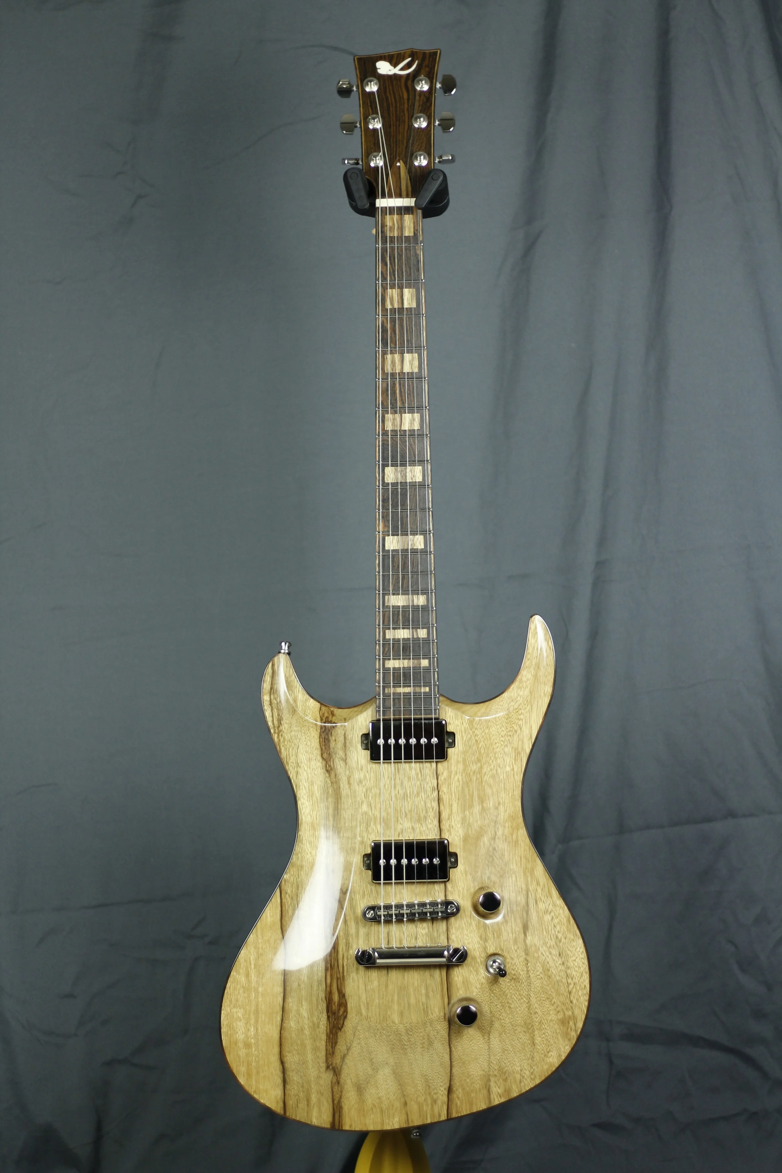 This is my first approach to carve top builds, inspired by vintage guitars. Meant to give a more classic vibe both in the aesthetic and in the feel, it has a 3x3 headstock, asymmetric body and really easy access to the higher frets. The original build were equipped with a TOM bridge but it can also be ordered with a floating tremolo system.